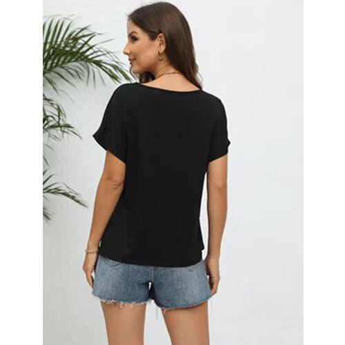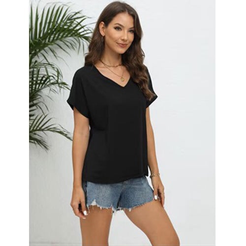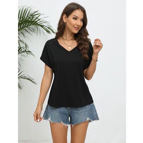 このレディースVネックバットスリーブ無地Tシャツは、ゆったりとしたシルエットと軽やかな着心地が魅力のカジュアルトップスです。柔らかく肌触りの良い素材を使用し、デイリー使いに最適。Vネックが首元をすっきり見せ、バットスリーブのゆるいラインが体型を自然にカバーしてくれます。無地デザインのため、どんなボトムスとも合わせやすく、ジーンズやスカート、ショートパンツなど幅広いコーデに対応。