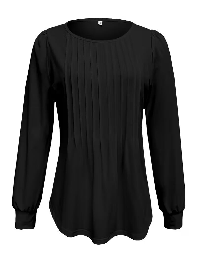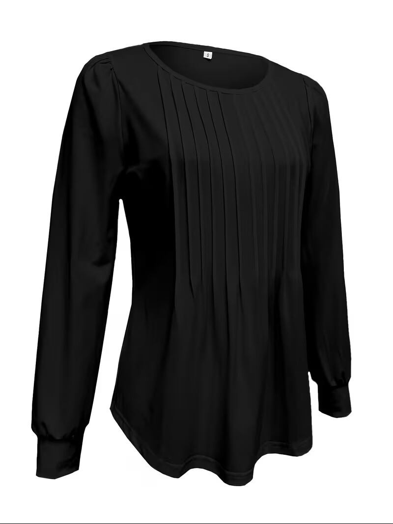 【送料無料】【春・秋】無地長袖ラウンドネック レディース カジュアルTシャツ - 方向性のあるデザイン K03552