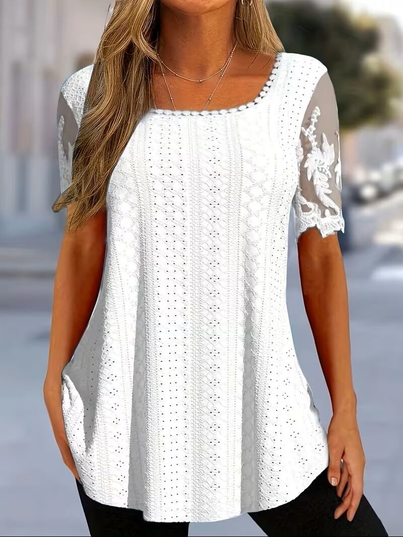 【送料無料】女性用エレガントなレーススリーブスクエアネックブラウス - セミシアーストレッチロングライントップ、フレアヘム付き、洗濯機可春/秋カジュアルからドレスアップシャツ、セミトランスペアレンティファブリック K03554