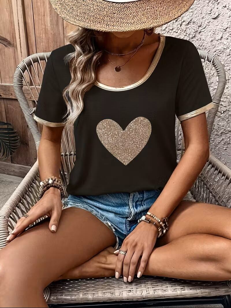 注目を集める「スプライシングカラー ブロンズカラー ラブハート 半袖Tシャツ」は、カジュアルスタイルにぴったりな一枚です。ブロンズカラーのスプライシングデザインが洗練された印象を与え、ラブハートのプリントがかわいらしさを引き立てます。軽やかな半袖の仕様は、暑い季節でも快適に着用できるのが魅力的です。多様なシーンにおいておしゃれに決まる、コーディネート必須のアイテムです!