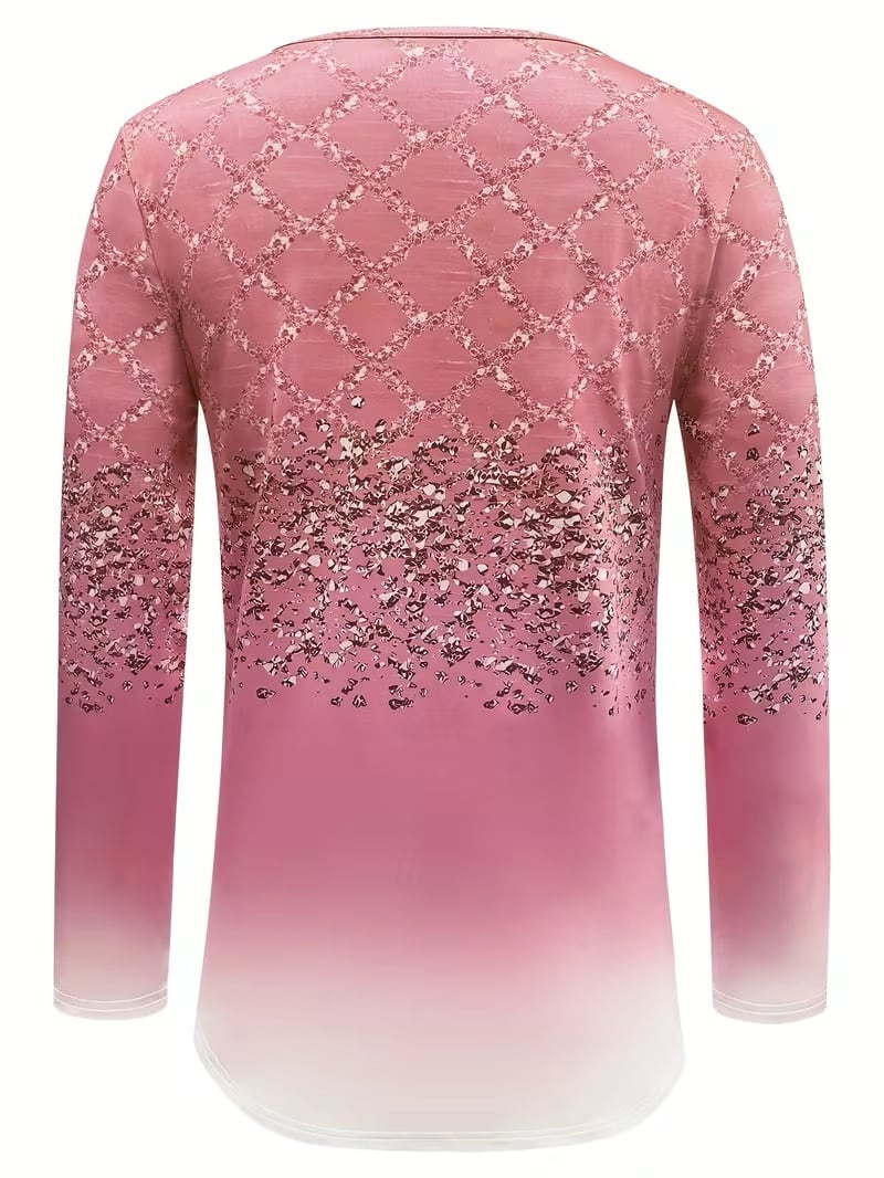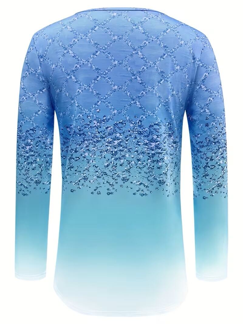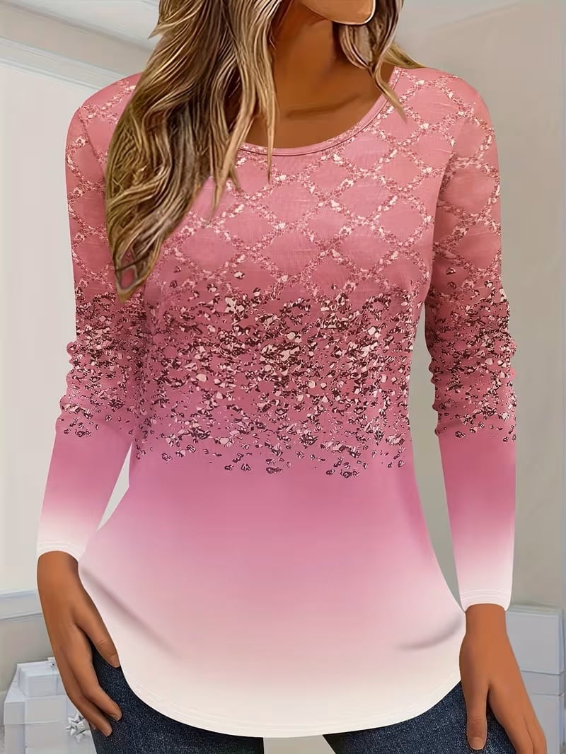 【送料無料】秋 レディースファッション グラデーションカラープリント 長袖Tシャツ ラウンドネック ルーズフィット カジュアルトップス K03565