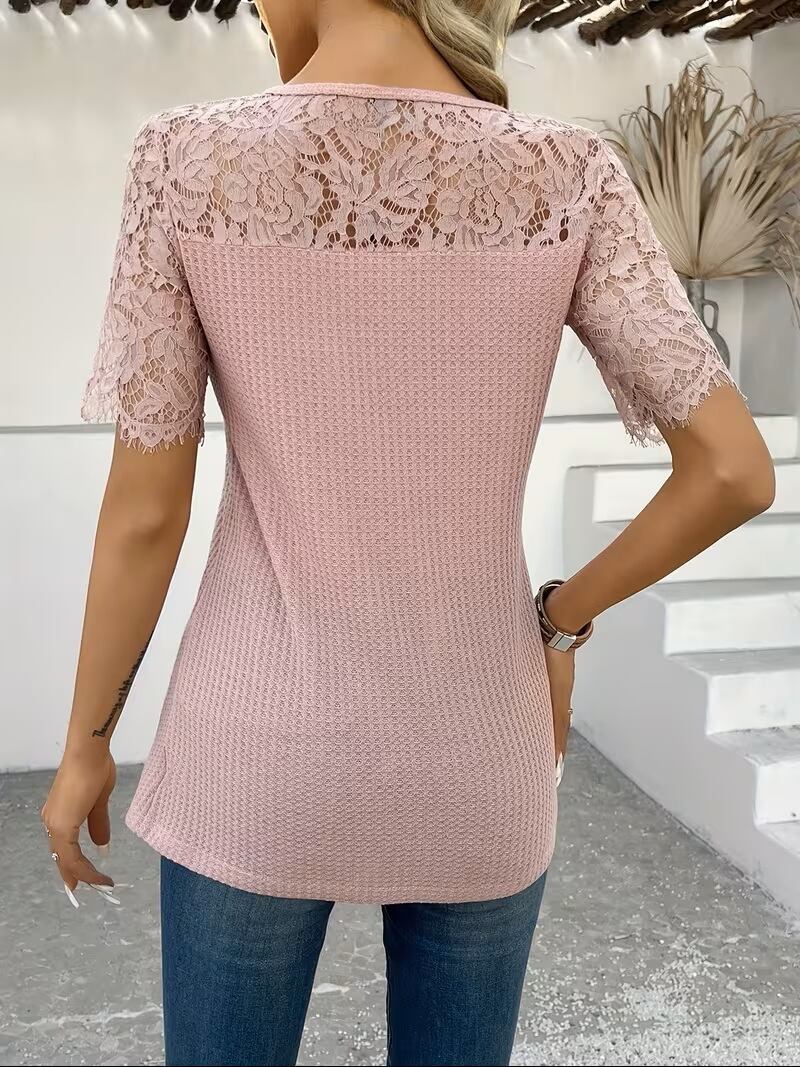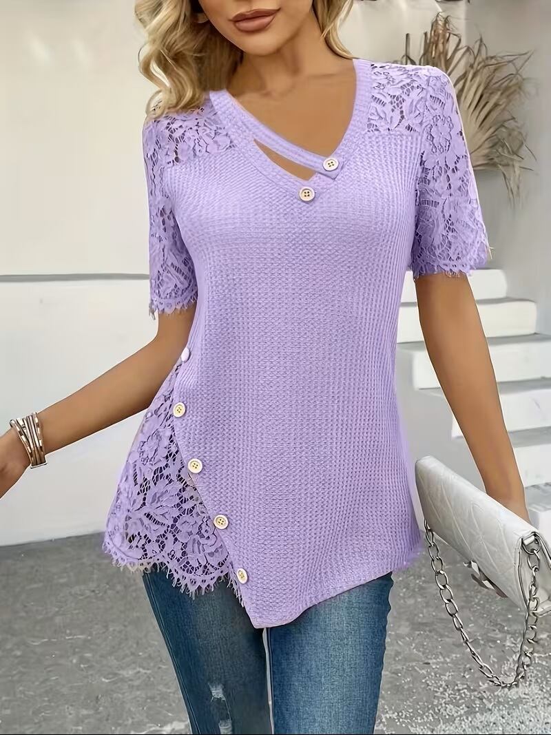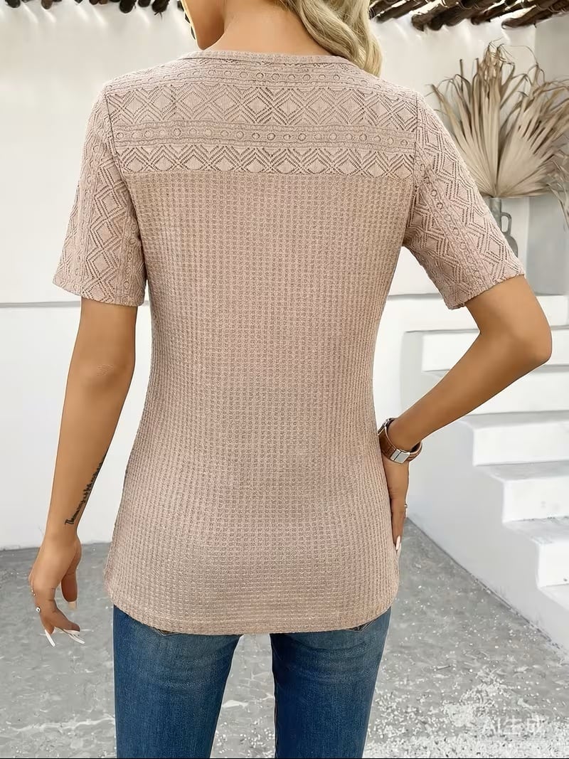エレガントでありながらカジュアルにも着こなせる「春夏レディースファッション エレガントカジュアルビーチバケーションTシャツ」は、軽やかな着心地とスタイリッシュなコントラストレース刺繍が魅力のアイテムです。無地のデザインに映えるレースのアクセントが、さりげなく女性らしさを引き立て、ビーチやバケーションにもぴったりです。