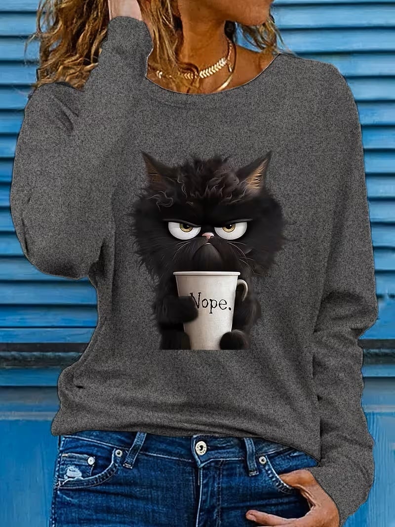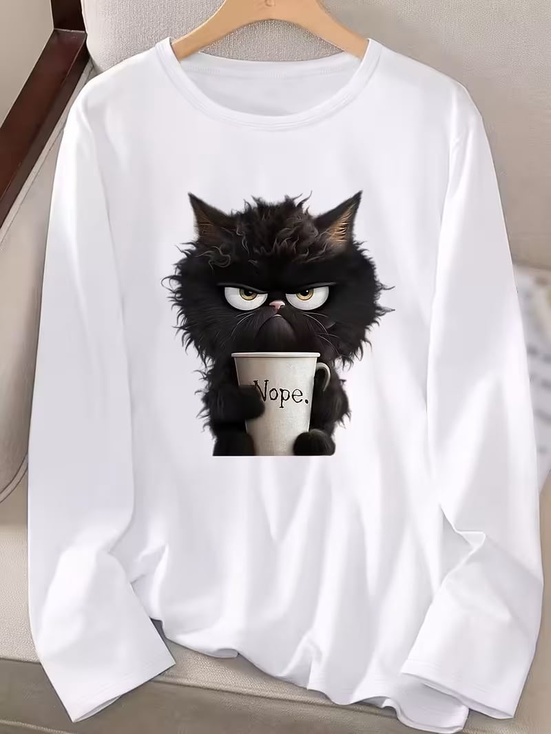 【送料無料】グラフィックプリント Tシャツ、長袖クルーネック カジュアルトップス 春・秋向け、レディース 服 K03606