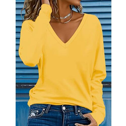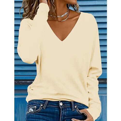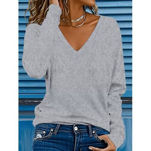 シンプルで洗練されたデザインが魅力の、秋冬にぴったりな無地Vネック長袖Tシャツです。柔らかく肌触りの良い素材を使用し、軽やかな着心地ながらも程よい暖かさをキープ。ミニマルなスタイルで、どんなコーディネートにも合わせやすい万能アイテムです。ジャケットやカーディガンのインナーとしてはもちろん、一枚でさらりと着ても上品にまとまります。