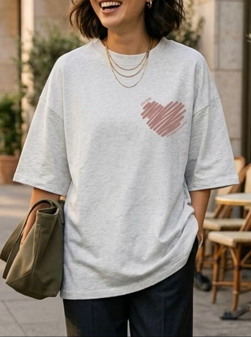 【送料無料】レディース 100%ピュア半袖Tシャツ おしゃれなラブプリント 半袖Ins風 ラウンドネック 万能トップス K03622