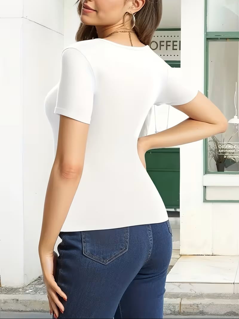 【送料無料】女性用セクシーVネック半袖Tシャツ - 中程度のストレッチ、無地、洗濯機可、春夏カジュアルウェアに適したレギュラーフィット、多機能フォームフィットデザイン K03637