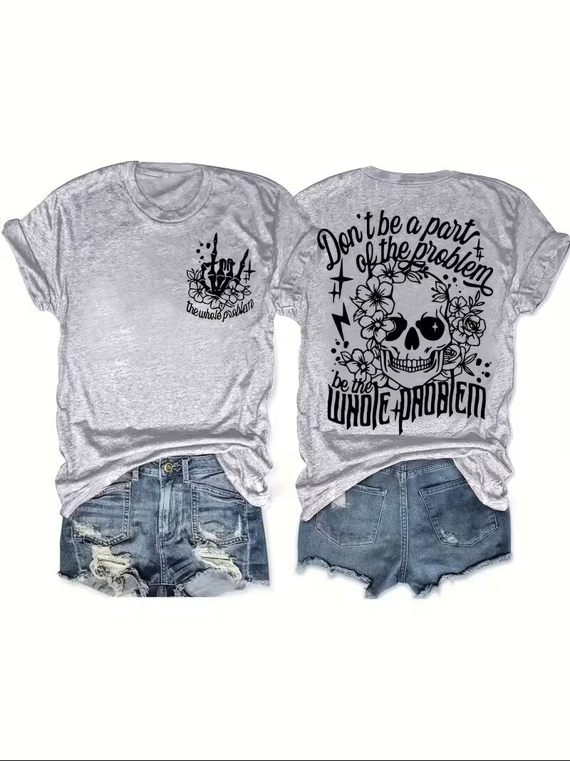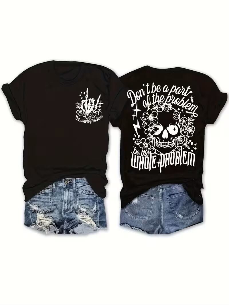 【送料無料】グラフィックプリントTシャツ, 半袖クルーネックカジュアルトップ, レディース服 K03666