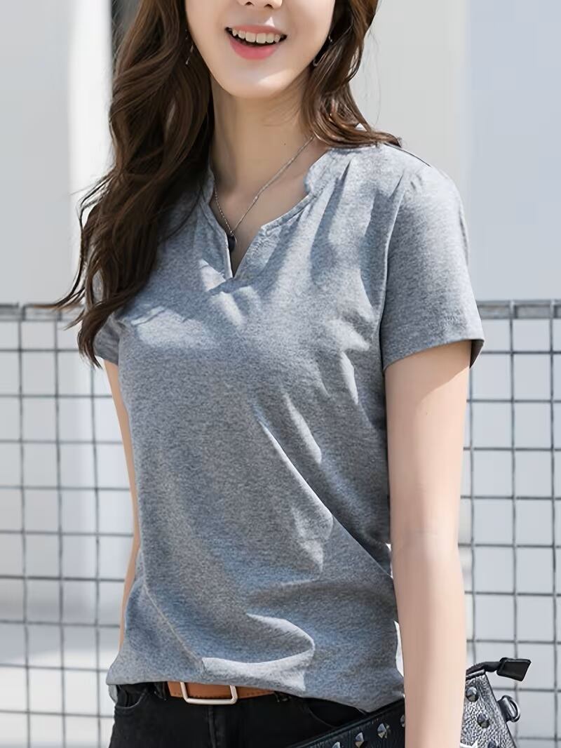 おしゃれでエレガントな雰囲気を持つレディースカジュアルTシャツです。ソフトな肌触りと軽やかな着心地を実現する素材を使用し、気持ち良くお召しいただけます。シンプルながらも洗練されたデザインが魅力で、デニムやスカート、ワイドパンツと組み合わせれば、どんなシーンでも上品なスタイルを演出します。