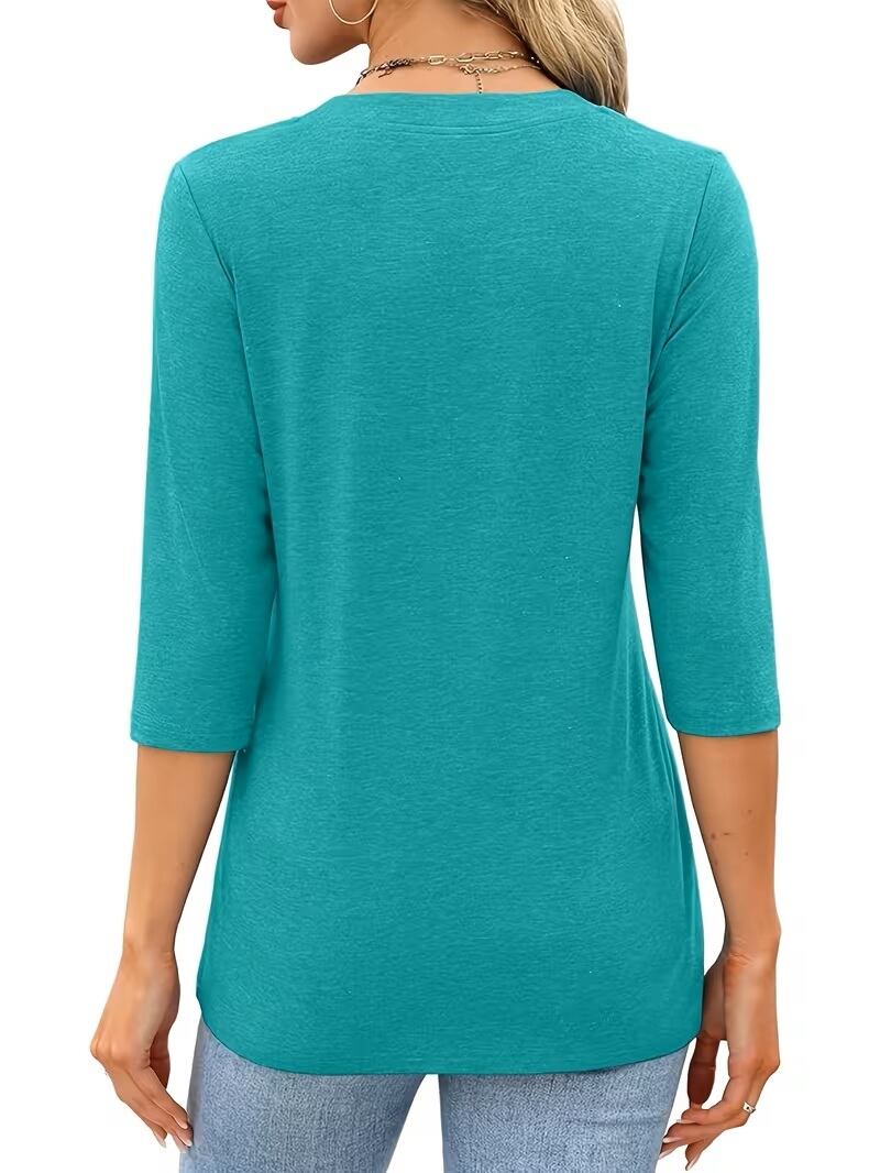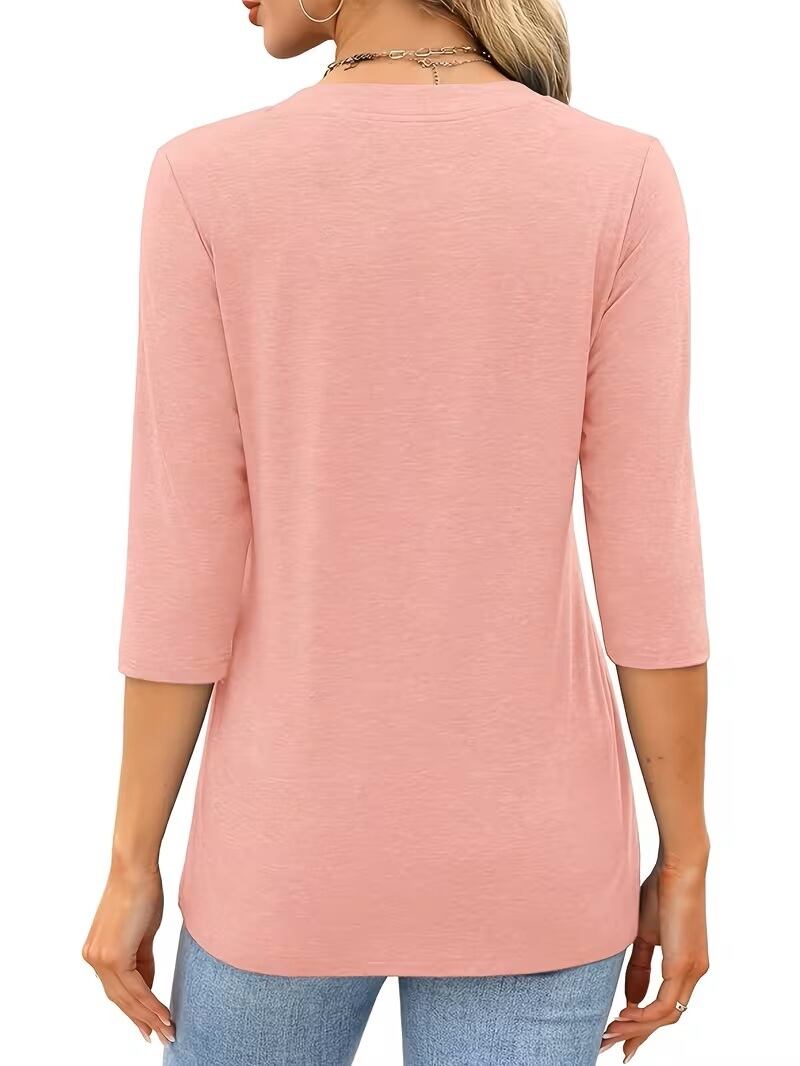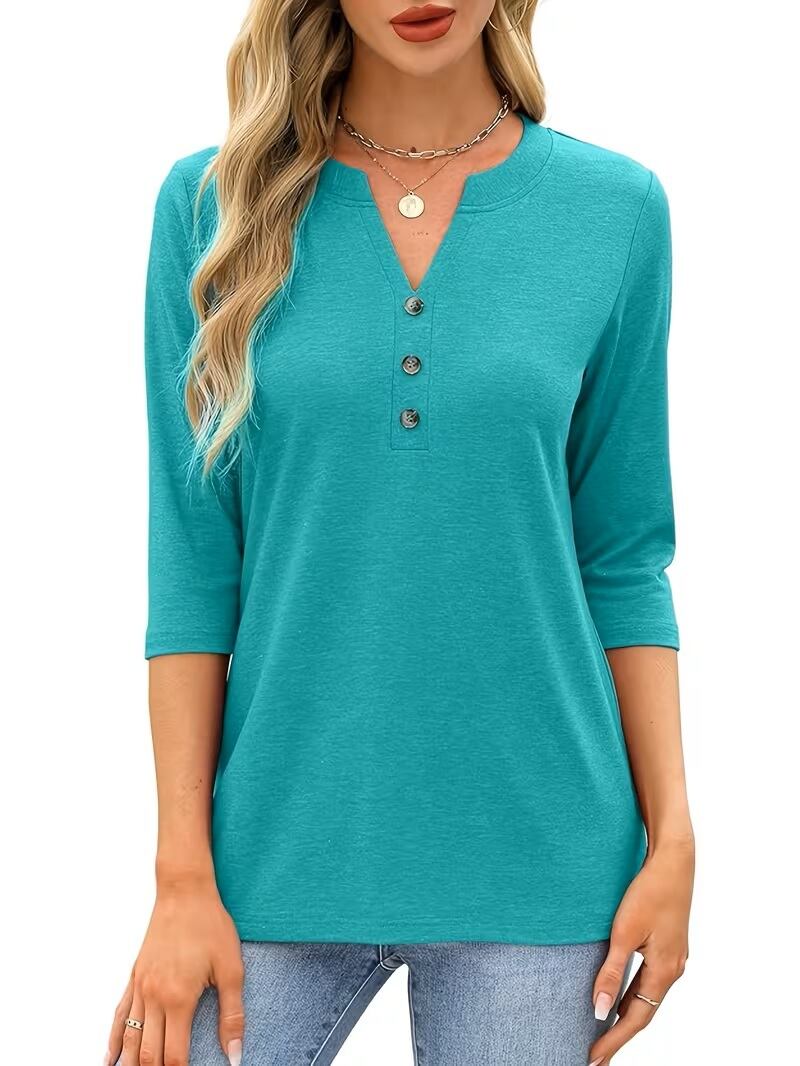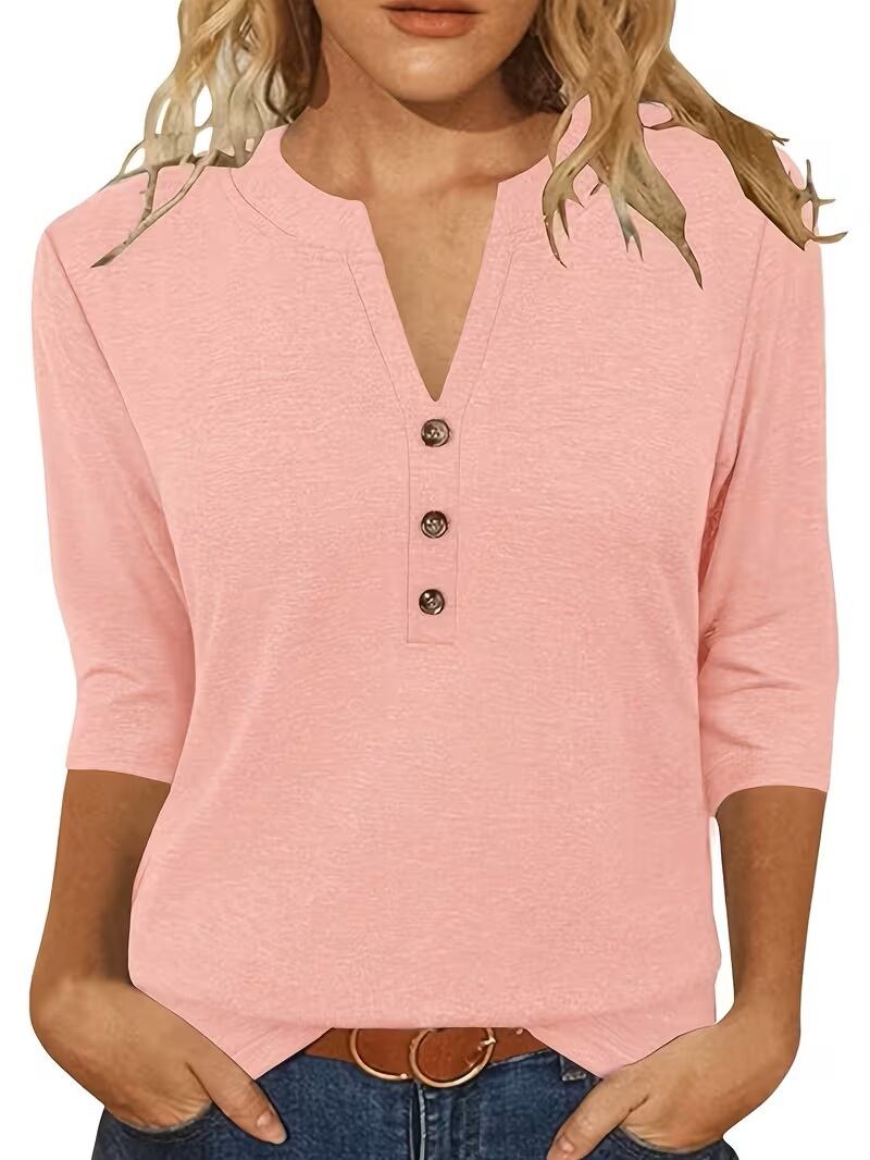 【送料無料】【2025年 ヨーロッパ/アメリカ ファッション】レディース 7分袖 Vネック シャツ カジュアル 夏 ボタン付き Tシャツ K03707