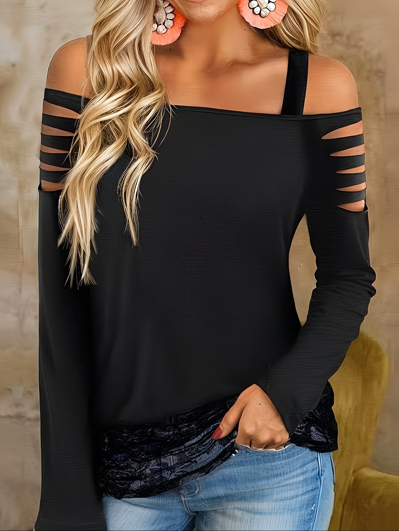 スタイリッシュなレディースTシャツが登場!カジュアルな無地デザインに、華やかなレーストリムが施されたオフショルダーのトップスで、普段使いからお出かけまで幅広く活躍します。軽やかな素材を使用しており、快適な着心地を実現。春夏のコーディネートにぴったりの一枚です。
