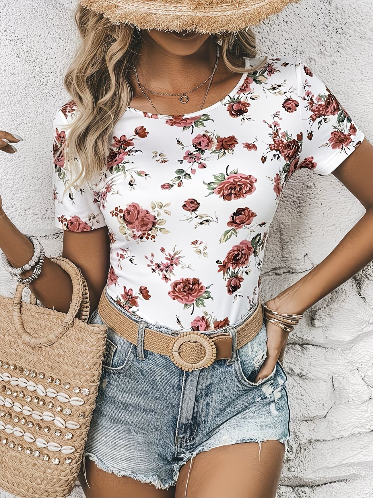 おしゃれで爽やかな印象を与えるラウンドネック 花柄 半袖 Tシャツ レディースが登場!花柄デザインは可愛らしさを引き立て、ゆったりとしたシルエットが快適な着心地を実現します。日常使いやお出かけに最適で、春夏のコーディネートに欠かせない一枚です。